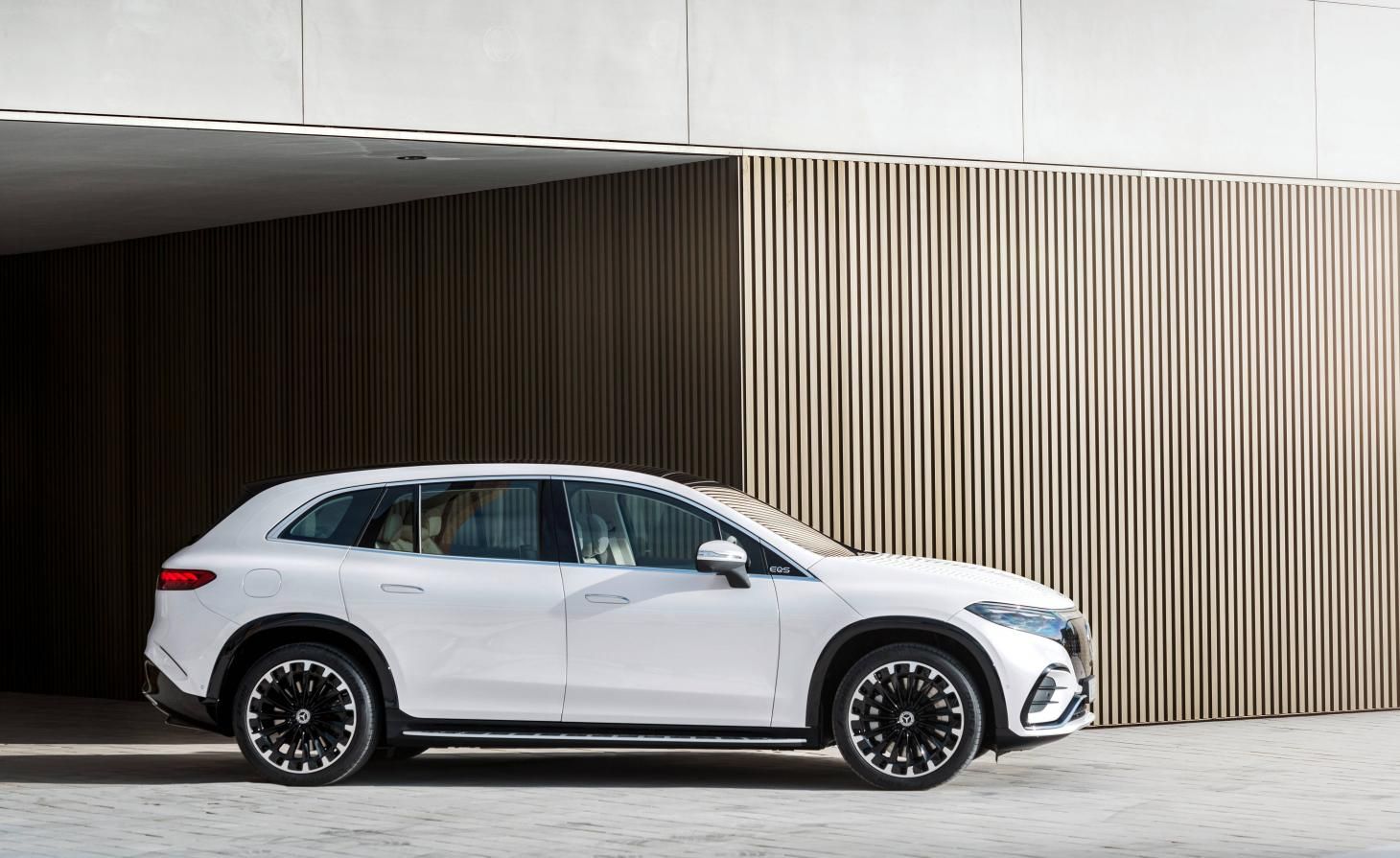EQS SUV yra naujausias "Mercedes" grynai elektrinių automobilių linijos modelis, kuris produktų medžio viršūnėje prisijungia prie savo pripažinto EQS sedano brolio ir sesers. Visureigis turi tą patį pagrindą kaip ir sedanas, tik jo kėbulas yra įprastesnio stiliaus, nugludintas, kad sukurtų EQ gamai būdingą rombo pavidalo išvaizdą. Gautas aerodinamiškas automobilis turėtų nuvažiuoti apie 381 mylią. Viduje yra pasirenkamas prietaisų skydelio pločio "Hyperscreen" ekranas ir galimybė įrengti trečią sėdynių eilę, todėl tai yra vienas iš nedaugelio rinkoje esančių visiškai elektrinių septynviečių automobilių.