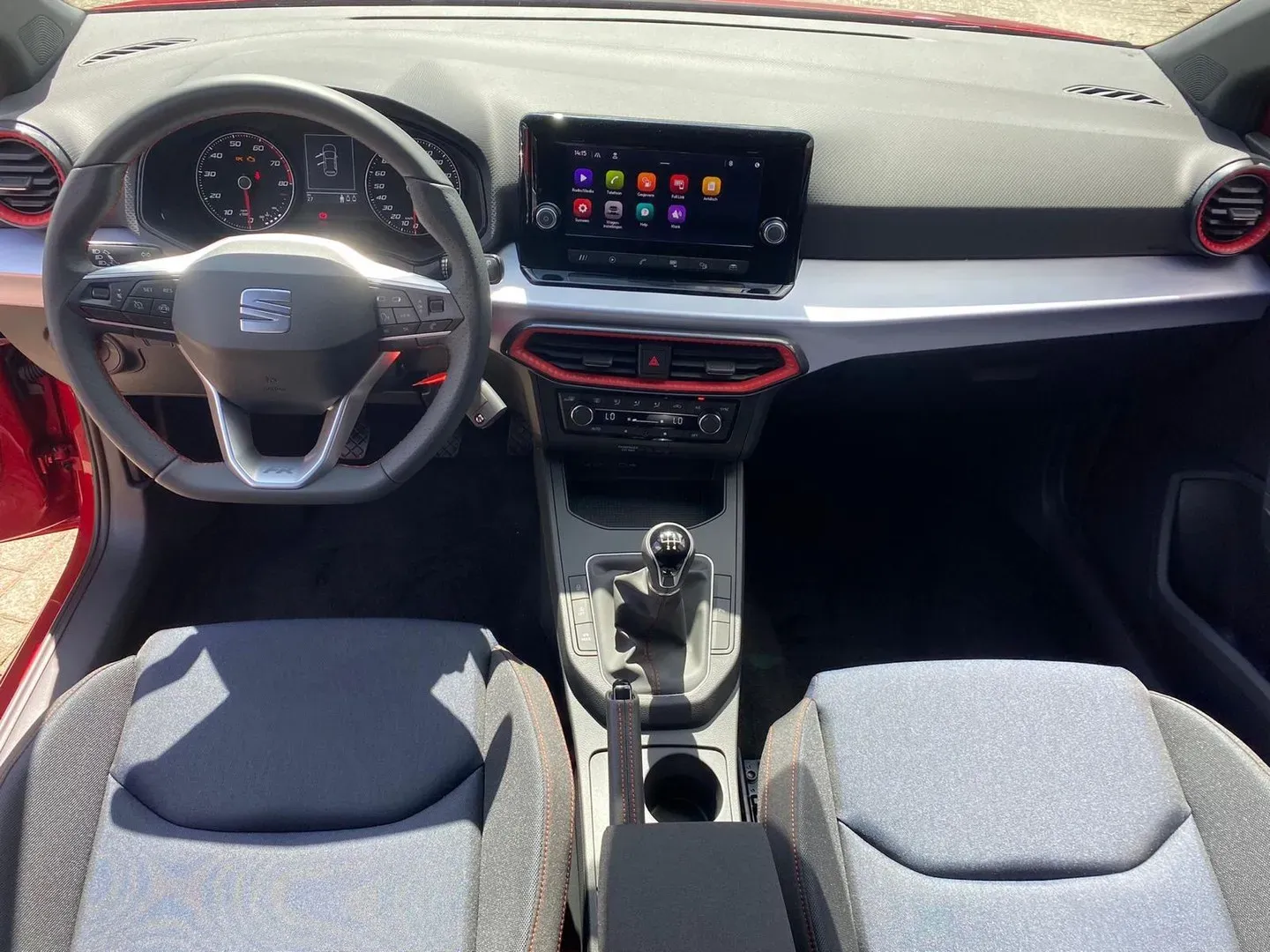SEAT Ibiza interjeras 2021 m. buvo gerokai atnaujintas ir dėl to atrodo dar geriau. Dabar čia yra tvarkingas minkšto lietimo prietaisų skydelis, per visą automobilio plotį einanti blizgi sidabrinė apdailos plokštė ir nauja informacinė ir pramogų sistema, įtaisyta naudingai aukštai.